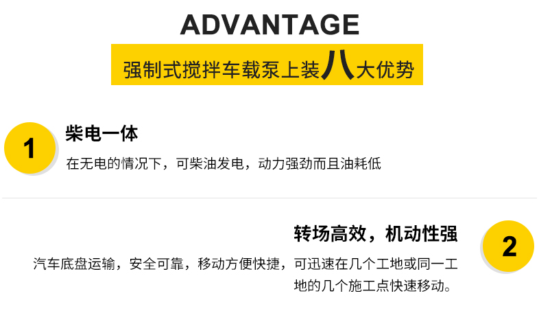 簡(jiǎn)介:小型混凝土泵車:車載強(qiáng)制攪拌拖泵集拖泵與強(qiáng)制式攪拌機(jī)的優(yōu)越性于一體,作業(yè)范圍不受地域路況影響,縮短投資回報(bào)周期,具有簡(jiǎn)化施工流程,節(jié)約勞動(dòng)成本,降低勞動(dòng)強(qiáng)度的優(yōu)勢(shì)。