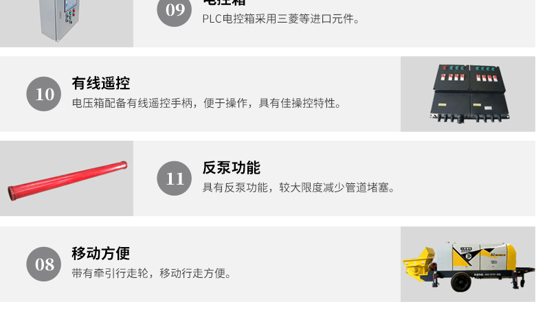 簡介:1、采用先進S管閥換向,出口壓力高,能滿足細石混凝土高層和遠距離輸送 2、主油泵采用優(yōu)質恒功率變量柱賽泵,系統(tǒng)壓力高,效能高,運行平衡。